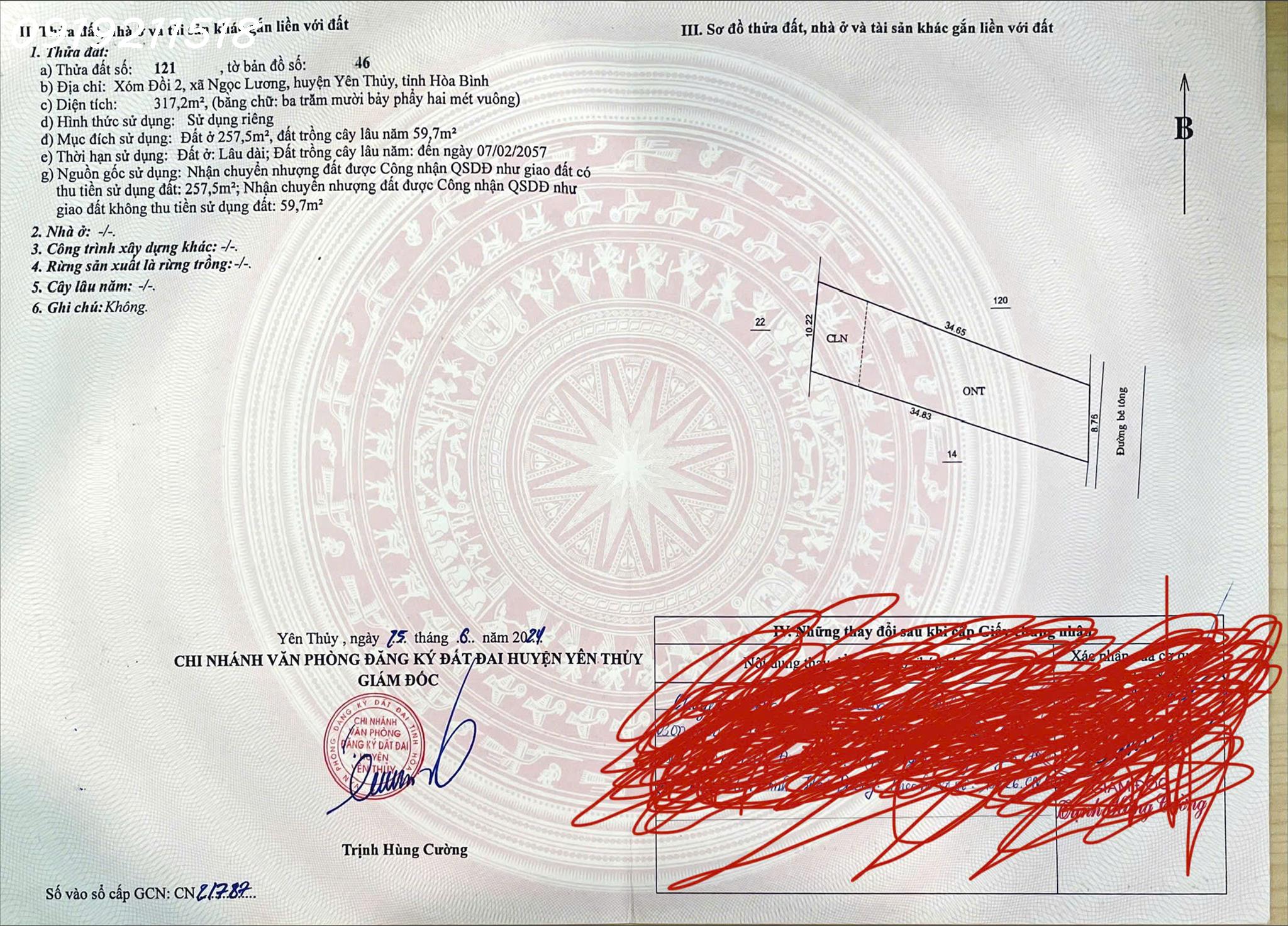bán 317m2 đất chính chủ tại đường 12b, xã ngọc lương, yên thủy, hòa