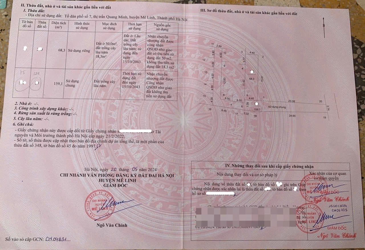 Em cần bán mảnh đất tổ dân phố số 2, thị trấn Chi Đông (Cũ), nay là thôn Chi Đông 2, xã Quang Minh, thành phố Hà Nội. + Diện tích: 51m, mặt tiền 4m, hướng tây bắc, đất full thổ cư. + Giá: 2,35 tỷ. + Đất nằm trên ngõ rộng hơn 2m, xe máy, xe ba gác ra vào, cách khoảng 50m tới chợ, đường trục chính làng, ô tô qua lại, kinh doanh sầm uất. + Phạm vi bán kính 300m quanh đất tiện ích bạt ngàn, có: Sân vận động, xới vật, nhà văn hoá, trường mầm non, trường học các cấp, UBND, đồn công an, trạm y tế …….. + Sổ đỏ đầy đủ, pháp lí chuẩn, sẵn sàng công chứng sang tên. + Liên hệ ngay em Tuyên, zalo/SDT: KHÔNG CHÍN BẢY HAI CHÍN CHÍN NĂM MỘT BẢY CHÍN để xem đất và làm việc chính chủ.