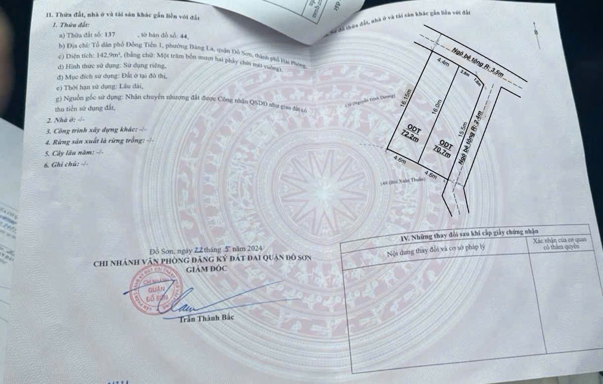 ĐẤT 90,2M² QUANG TRUNG MINH ĐỨC – CÁCH THƯỢNG ĐỨC HƠN 100M – GIÁ 1,5X TỶ HIẾM TẦM TIỀN ZALO 0567 222 555 -Diện tích: 90,2m²-Mặt tiền: 5m-Vị trí: Tổ dân phố Quang Trung, phường Minh Đức, quận Đồ Sơn, Hải Phòng-Đường trước đất: Ngõ bê tông, xe ô tô di chuyển thuận tiện-Khoảng cách: Cách trục chính đường Thượng Đức chỉ hơn 100m-Khu dân cư: Dân cư hiện hữu, nhà ở ổn định-Tiện ích: Gần trường học các cấp, gần chợ, gần trung tâm hành chính phường Nam Đồ Sơn, gần khu công nghiệp-Pháp lý: Sổ đỏ riêng-Giá: 1,5x tỷ-Tiềm năng đầu tư: Phù hợp nhà đầu tư tìm lô đất diện tích rộng, tầm tiền thấp khu Minh Đức, thuận tiện xây ở hoặc tích lũy tài sản dài hạn -Liên hệ để xem đất thực tế và trao đổi trực tiếp NHÀ ĐẤT ANH MINH 782 Phạm Văn Đồng, Dương Kinh, Hải PhòngTrọng Điểm: Dương Kinh • Đồ Sơn • Kiến ThụySĐT/ZALO: 0567 222 555-Thông tin mang tính tham khảo tại thời điểm đăng. Xin vui lòng kiểm tra thực tế.#BatDongSanHaiPhong #DoSon #MinhDuc #QuangTrung #ThuongDuc #CoHoiDauTu #ThanhKhoanTot