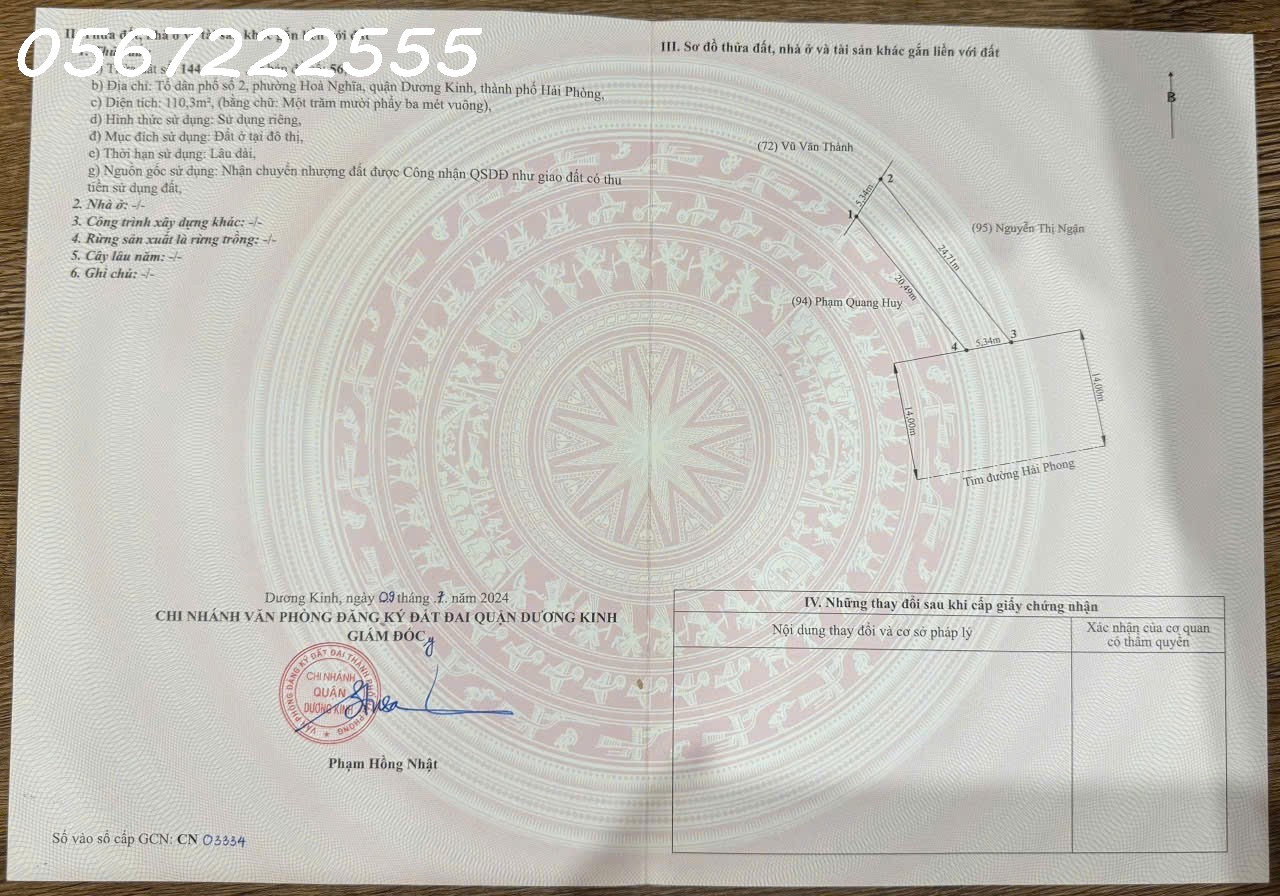 - SIÊU PHẨM MẶT ĐƯỜNG 402 TƯ THỦY – NGÃ 3 XUÂN DIỆU – VỊ TRÍ VÀNG KINH DOANH ĐẮC ĐỊA-ZALO: 0567 222 555 - Cơ hội hiếm có để sở hữu lô đất mặt đường lớn tại khu vực phát triển sôi động nhất Hòa Nghĩa, Dương Kinh. Với lợi thế nằm ngay ngã 3, đây là tọa độ lý tưởng cho mọi kế hoạch kinh doanh hoặc đầu tư dài hạn. - Diện tích: 127m2 (Mặt tiền rộng tới 6m – Rất thoáng và bề thế). - Vị trí & Tiềm năng kinh doanh: + Tọa lạc ngay mặt đường 402 khu vực Tư Thủy, phường Hòa Nghĩa, quận Dương Kinh, Hải Phòng. + Điểm nhấn cực đắt giá: Nằm ngay ngã 3 giao với đường Xuân Diệu, nơi có lưu lượng giao thông đông đúc, tấp nập suốt ngày đêm. + Phù hợp kinh doanh đa ngành nghề: Mở showroom, văn phòng, nhà hàng, spa, cửa hàng tiện lợi hoặc xây dựng tòa nhà cho thuê. - Hạ tầng & Kết nối: + Đường trước đất rộng rãi, vỉa hè thông thoáng, hạ tầng kỹ thuật đồng bộ. + Khu vực dân cư giàu có, dân trí cao, an ninh đảm bảo. - Pháp lý: Bìa hồng chính chủ (Thửa 37, tờ bản đồ 41), pháp lý chuẩn chỉnh, sang tên nhanh chóng. - Giá bán: 3x triệu/m2 (Mức giá đầu tư cực tốt cho một vị trí mặt đường ngã 3 chiến lược). - Liên hệ ngay để sở hữu vị trí kinh doanh đỉnh nhất khu vực: 0567 222 555. - NHÀ ĐẤT ANH MINH 782 Phạm Văn Đồng, Dương Kinh, Hải Phòng - Trọng Điểm: Dương Kinh • Đồ S