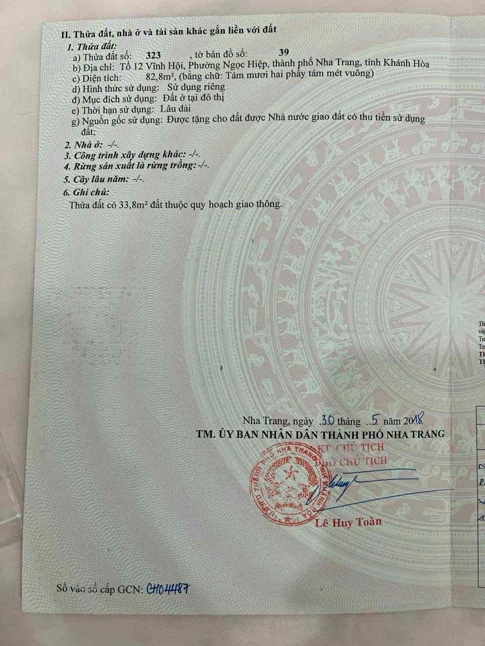 BÁN LÔ ĐẤT SÁT BIỂN HẺM BẮC SƠN, VĨNH HẢI, BẮC NHA TRANG Cách đường Bắc Sơn chỉ sau 1 căn nhà, đi bộ ra biển rất gần & tiện. Gần biển, gần chợ, gần trường học,...đi bộ ra là tiện ích đầy đủ. Diện tích : 95,9m2 (full thổ), ngang 4,73m (sau QHGT còn 79,8m2). GIÁ CHỈ: 5Ty2
