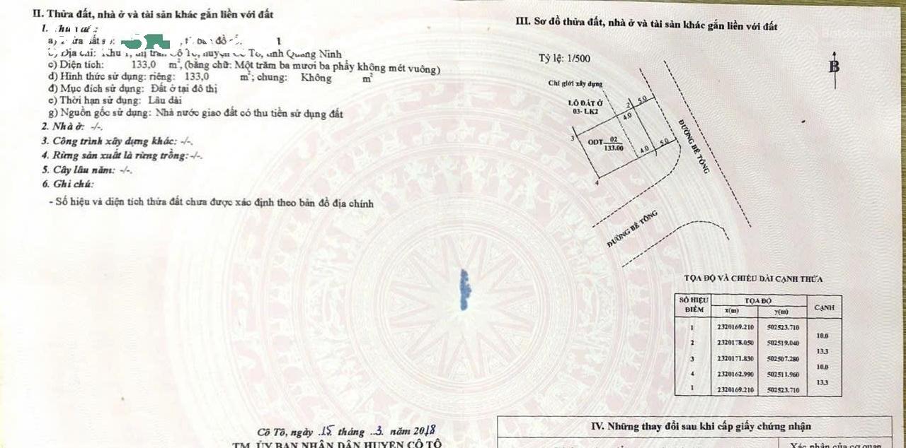 Bán đất mặt biển tại Thị trấn Cô Tô - Quảng Ninh, phù hợp làm khách