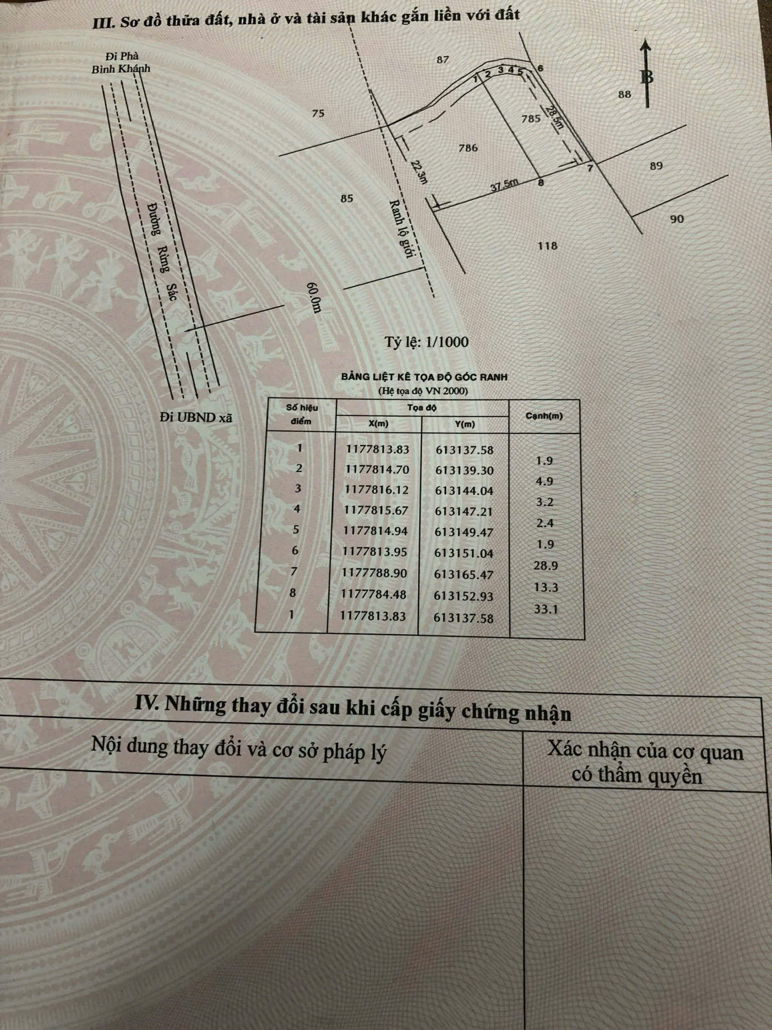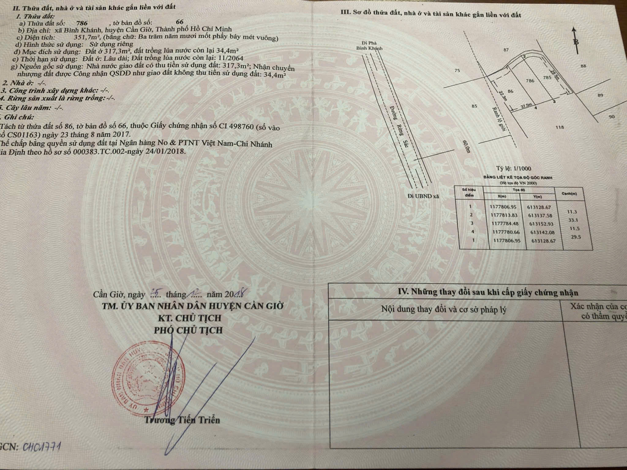 Diện tích : 1907,4m2 , 3 sổ (405,7m2+ 317,3m2 + 1184,4m2 )