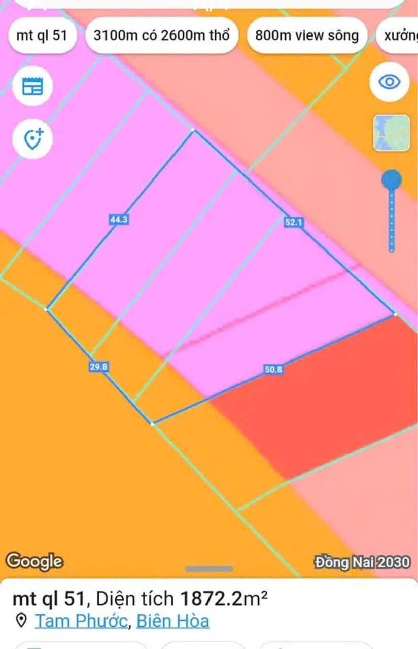 bán đất mặt tiền quốc lộ 51 .thuộc phường tam phước. tp biên hòa