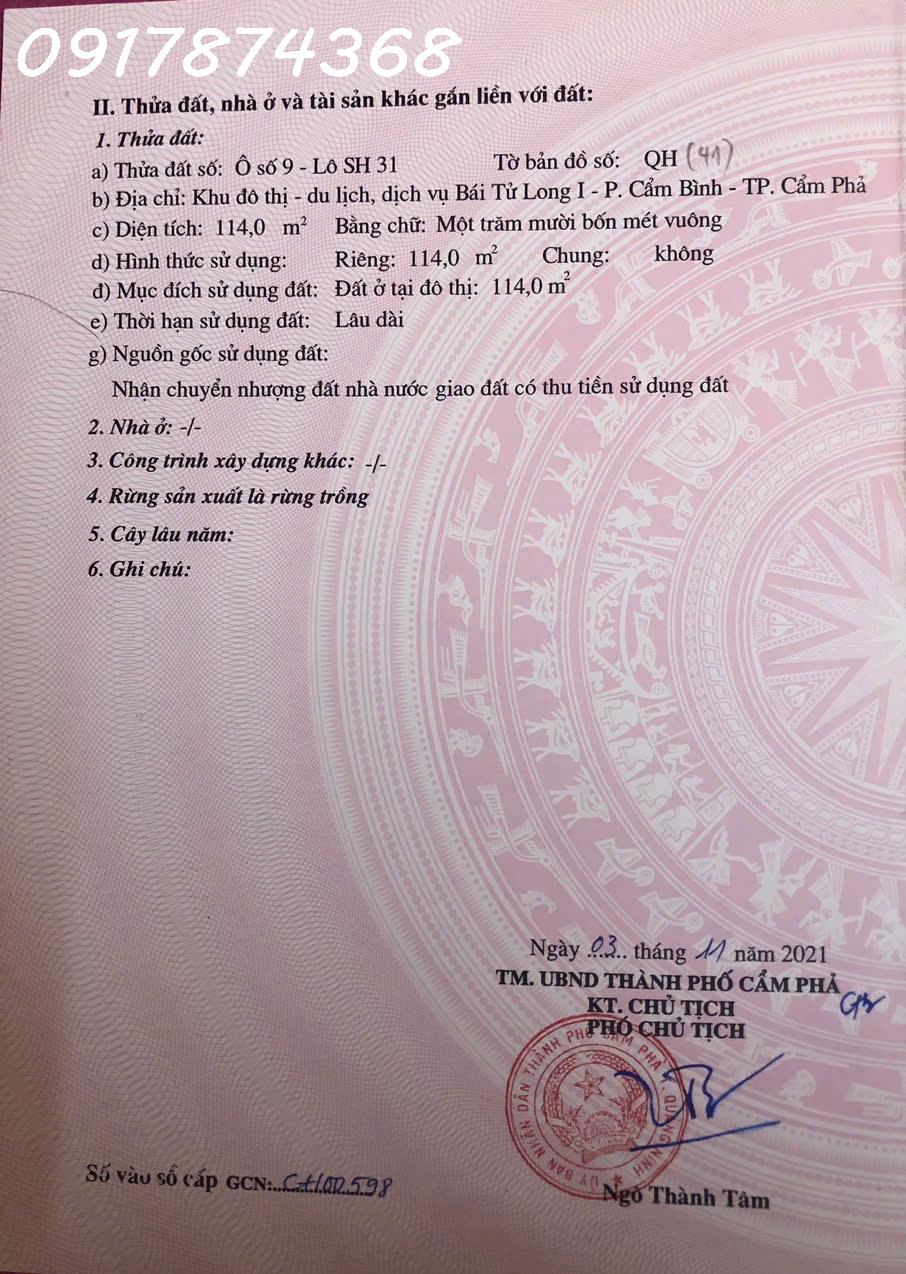Bán đất shophouse tại Đường Bái Tử Long, Phường Cẩm Phả, Quảng Ninh, DT 114m2, giá bán 3,8 tỷ