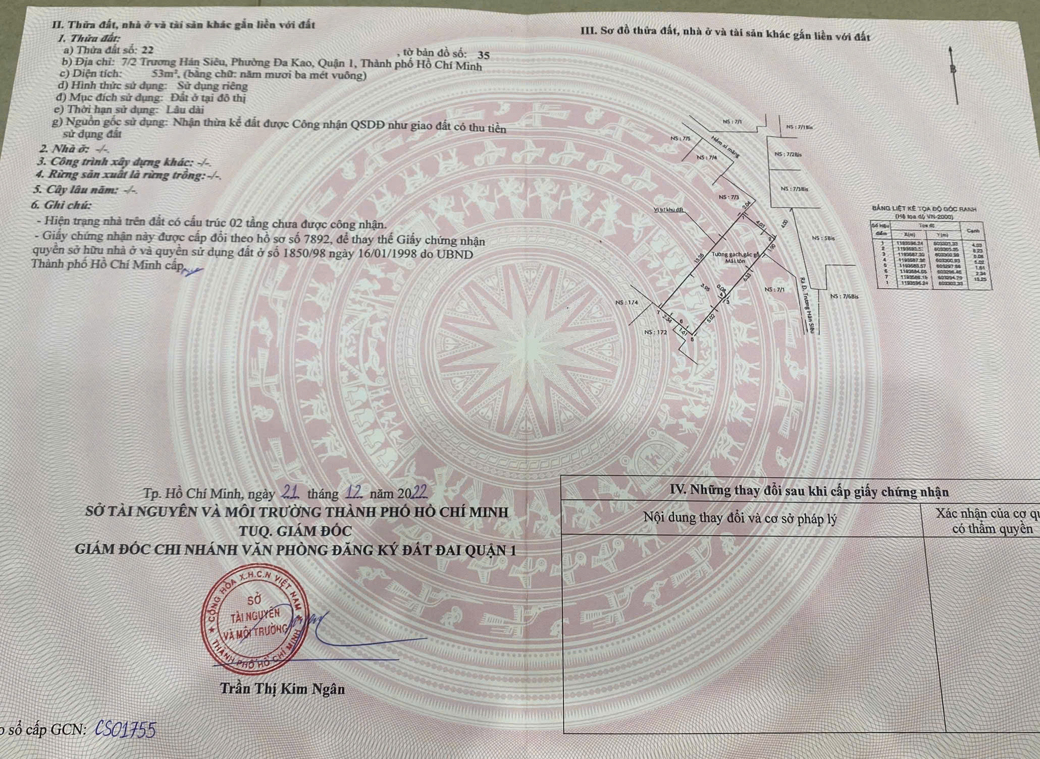 bán nhà 7/2-7/3 trương hán siêu, phường đa kao, quận1