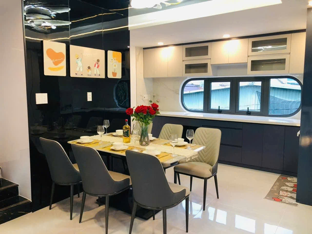 Nhà mới xây 100%, thiết kế hiện đại, sang trọng * Kết cấu: 4 tầng + sân thượng trước sau thoáng mát * Công năng đầy đủ: - 4 phòng ngủ - 5 WC - Phòng khách rộng (có lửng) - Bếp + phòng thờ riêng * Có giếng trời + ban công → cực kỳ thoáng & sáng * Hẻm xe tải, ô tô vào tận nhà, khu vực sạch đẹp, yên tĩnh * Full nội thất cao cấp – chỉ cần xách vali vào ở ngay Liên hệ: 0366012325 Giá 6tỷ8