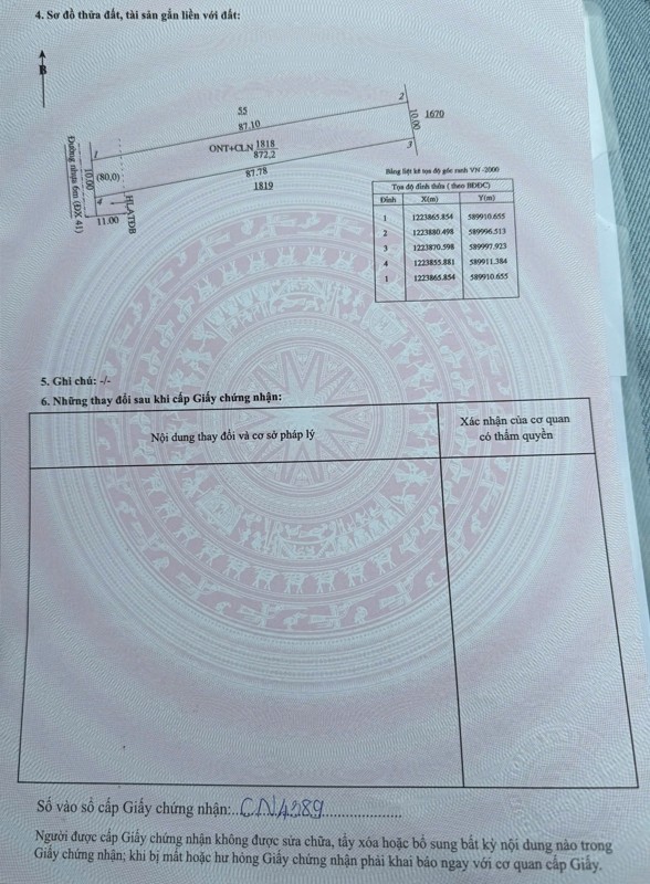 - Diện tích 10*88m, diện tích 872,2 m2 (100 m2 TC)