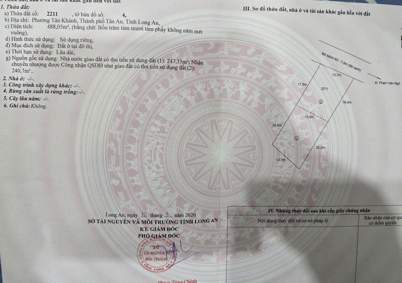 Cần bán lô đất thổ cư mặt tiền đường đan bờ kênh N3, Phường Tân Khánh, Thành Phố Tân An, Long An(Cũ)