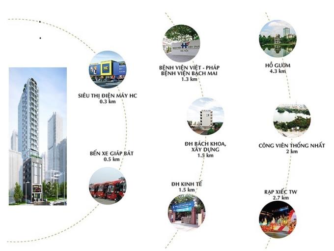 Từ chung cư 777 Giải Phóng, quý khách hàng sẽ được hưởng trọn tầm ngắm đẹp mắt của Công Viên Đền Lừ, đón gió trong lành, mát rượi từ công viên Thống Nhất. Ngoài ra nơi đây còn dễ dàng di chuyển tới nhiều nơi trọng điểm của Hà Nội như: