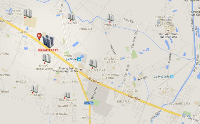 BrightCity còn có vị trí nằm trong khu trung tâm các khu đô thị lớn trên địa bàn huyện Hoài Đức. Đối diện với khu đô thị Kim Chung - Di Trạch, Cách khu đô thị Bắc 32 về phía Tây 2 Km, Cách khu đô thị Nam 32 và Tân Tây Đô về phái Tây 4 Km, Cách khu đô thị Vân Canh về phía Đông Nam 1 km...
