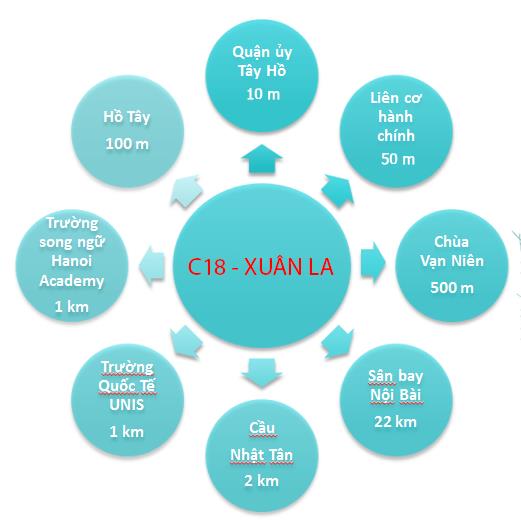 – Dự án tái định cư C18 Lạc Long Quân sở hữu một vị trí vô cùng tuyệt vời khi nằm ngay cạnh Quận ủy Tây Hồ. Chỉ các hồ Tây khoảng 200m, các cầu Nhật Tân khoảng 500m và các Khu đô thị Ciputra khoảng 300m. Nằm trên mặt đường Võ Chí Công và đường Lạc Long Quân, gần cầu Nhật Tân. Cách Hồ Tây chỉ 200m, lại gần các trường tiểu học và trung học cơ sở Xuân La. Xuân Đỉnh, gần trường Đại học Nội Vụ… Gần sân bay quốc tế Nội Bài…