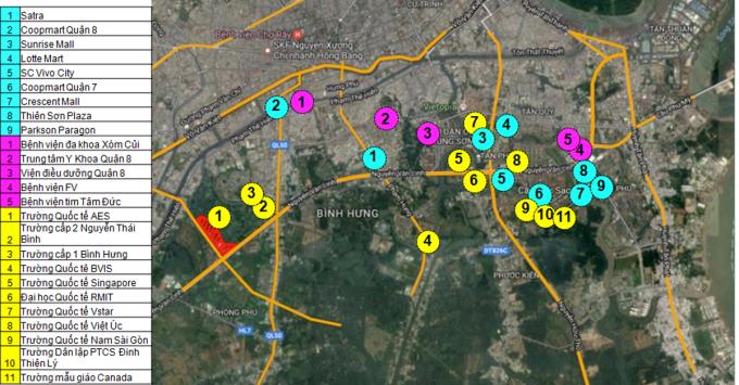 Ngoài ra, căn hộ còn sở hữu mặt đường Nguyễn Văn Linh có 8 làn đường, thuận tiện cho cư dân kết nối với đường Nguyễn Tri Phương để kết nối với trung tâm quận 5, vào quận 1 qua đường Khánh Hội, qua quốc lộ 50 để vào trung tâm Chợ Lớn, ...