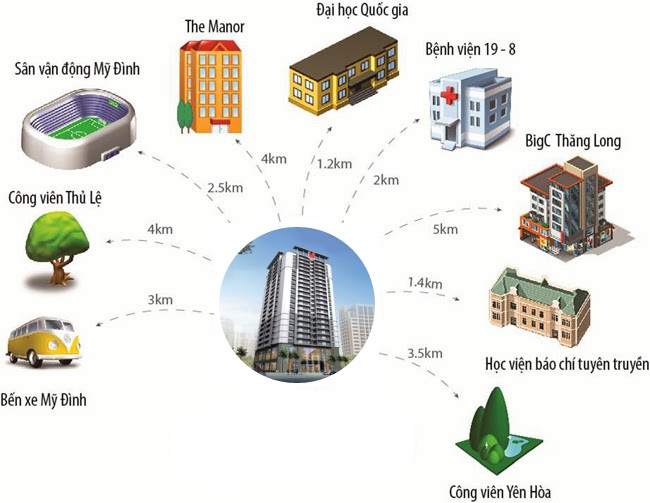 Dự án nằm ở vị trí đắc địa nên được thừa hưởng cả một hệ thống hiện đại gồm những công trình như công viên Yên Hòa, Thủ Lệ, Big C Thăng Long, Trung tâm Hội nghị Quốc gia, Cao đẳng Công Nghiệp, Đại học Thương Mại, Đại học Quốc Gia, bến xe Mỹ Đình, sân vận động Mỹ Đình...