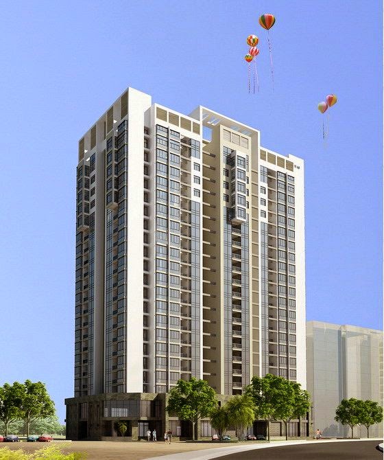Toàn bộ mặt đứng nhà từ tầng 3 đến tầng 21 sử dụng sơn kết hợp hệ nhôm kính liên kết tạo cảm giác khỏe nhưng nhẹ nhàng cho kiến trúc công trình.