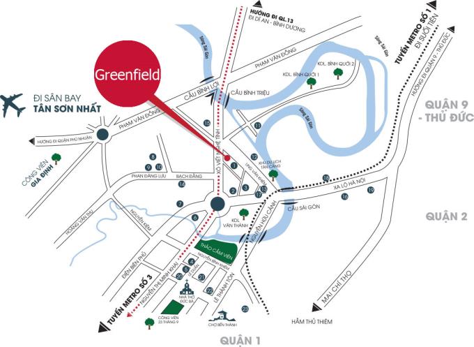 Dự án Greenfield 686 sở hữu vị trí đắc địa, tạo lạc ngay trên Mặt tiền đường số 686 Xô Viết Nghệ Tĩnh, Phường 25, Bình Thạnh, TP.HCM. Quận Bình Thạnh được xem quỹ đất hiếm hoi hiếm có gần với trung tâm kết nối các tuyến đường lớn như: Ung Văn Khiêm, Xô Viết Nghệ Tĩnh, Điện Biên Phủ, Nguyễn Xí, Phạm Văn Đồng,…Nhờ vị trí thuận lợi tại khu vực, căn hộ kết nối nhanh đến các tiện ích hiếm hoi như: