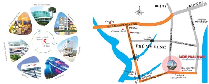 Căn hộ Saigon Plaza Tower liền kề các dịch vụ tiện ích xung quanh như: TTTM Saigon Paragon, trung tâm triễn lãm Quốc tế, siêu thị Co.op mart, Bệnh viện Pháp – Việt, Bệnh viện Tâm Đức, Đại học RMIT…