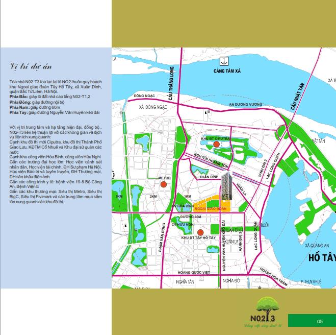 Chung Cư N02T3 vị trí đắc địa, trung tâm khu đô thị Ngoại Giao Đoàn, mặt đường Nguyễn Văn Huyên View công viên hồ điều hòa – công viên Hòa Bình và Đại Sứ Quán