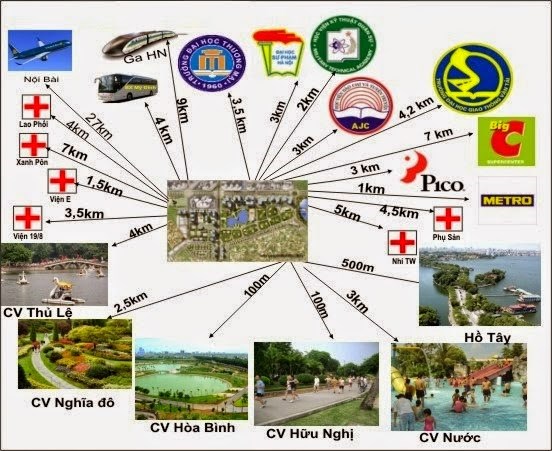 - Khu ngoại giao đoàn là quần thể phức hợp gồm các khu nhà ở công vụ cho nhân viên các đại sứ quán, nhà ở cao tầng, biệt thự, nhà vườn với hệ thống tiện ích đồng bộ gồm: công viên, hồ điều hòa, trường học, trung tâm thương mại, dịch vụ …