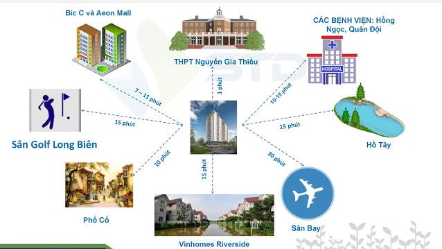 Dự án cách Trường mầm non tư thục An An 0.19km, Trường tiểu học Ái Mộ 0.4km, Trường THCS Ái Mộ (Gia Lâm B) 0.72km, Trường THPT Nguyễn Gia Thiều 0.81km, Trường THCS Ngọc Lâm 0.97km, Trường tiểu học Ngọc Lâm 1km, Trường THCS Bồ Đề 1.57km, Trường THCS Gia Thụy 1.95km, Trường tiểu học Gia Thụy 2.04km, Trường Tiểu học Sài Đồng 4.09km..