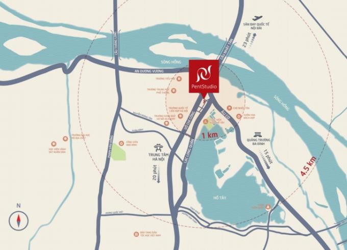 Nằm tại số 699 Lạc Long Quân - Phú Thượng, một trong những vị trí trung tâm quận Tây Hồ, nằm ngay cạnh Hồ Tây. Dự án PentStudio chiếm ưu thế rất lớn về mặt giao thông, trong vùng bán kính "Vàng", gần các con đường huyết mạch của Hà Nội như Võ Chí Công, Lạc Long Quân và Âu Cơ .Chỉ mất 20 phút để đi đến sân bay quốc tế Nội Bài hay quảng trường Ba Đình; 15 phút để đi đến công viên Hoà Bình; và không tới 10 phút để đi đến trường quốc tế Liên Hợp Quốc, bệnh viện quốc tế SOS Hà Nội, hoặc cầu Nhật Tân.