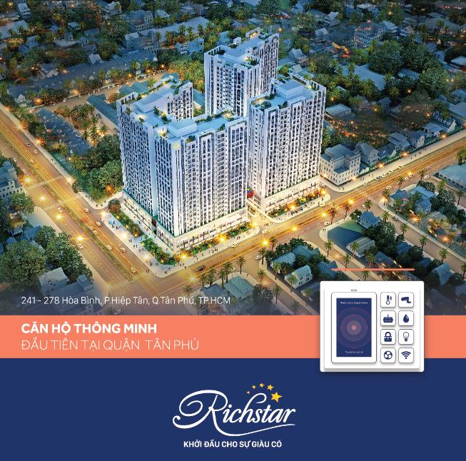 Căn hộ RichStar là dự án khu phức hợp Thương Mại - chung cư cao cấp đầu tiên tại khu Tây Sài Gòn của chủ đầu tư Novaland . Dự án RichStar Tân Phú được Novaland phát triển với quy mô 3 ha gồm 6 tòa tháp cao 25 tầng, dự án RichStar với quy mô hơn 3 ha, trải dài trên mặt tiền đường Hòa Bình 250m và mặt tiền đường Tô Hiệu. Đây là dự án chung cư cao cấp được Novaland sắp mở bán.