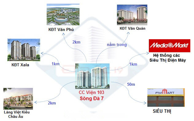 - Chung cư Viện 103 Văn Quán được hưởng đầy đủ tiện ích của những khu đô thị lân cận như: KĐT Xala, KĐT Văn Phú, Khu Làng Việt Kiều Châu Âu, KĐT Mỗ Lao...