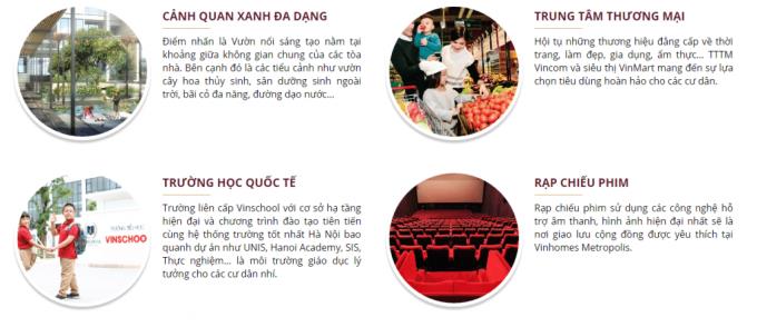 Chung cư cao cấp Vinhomes Metropolis Liễu Giai đáp ứng tốt nhất mọi nhu cầu của một cuộc sống hoàn hảo đối với các cư dân tương lai bằng dịch vụ tiện ích 5 sao, đáp ứng tốt nhất về mọi mặt cho cư dân nơi đây cả về: giải trí – giáo dục – chăm sóc sức khỏe.