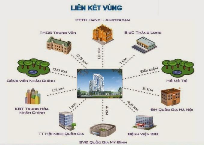 • Xung quanh là hệ thống các trường ĐH lớn như : Trường ĐH Quốc Gia, Đại học Ngoại ngữ Hà Nội, Đại học Thương Mại. Trường PTTH Amsterdam 800m. Trường THCS Việt Nam – Angieri, Trường TH Đặng Trần Côn cách 400m.