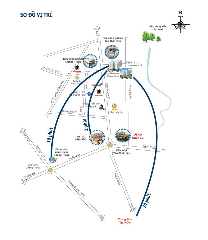 - Phú, KCN Tân Thới Hiệp, Trung tâm hành chính, khu công viên cây xanh, Quốc lộ 1A chỉ 2 phút.