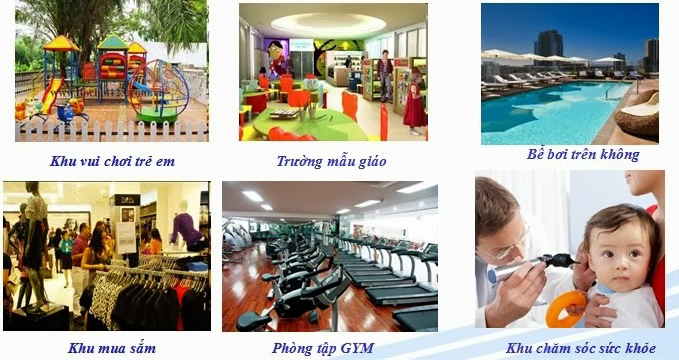 Tất cả những tiện ích đều nằm trong tòa nhà và khuôn viên tạo ra những phút giây tuyệt vời cho chính bạn và gia đình tạo nên cuộc sống lý tưởng. 5 tầng thương mại dịch vụ với đầy đủ những tiện ích như siêu thị, nhà trẻ, phòng khám y tế, văn phòng, phòng gym,… Đặc biệt là tại tầng 5 còn được thiết kế bể bơi ngoài trời và vườn cây xanh.