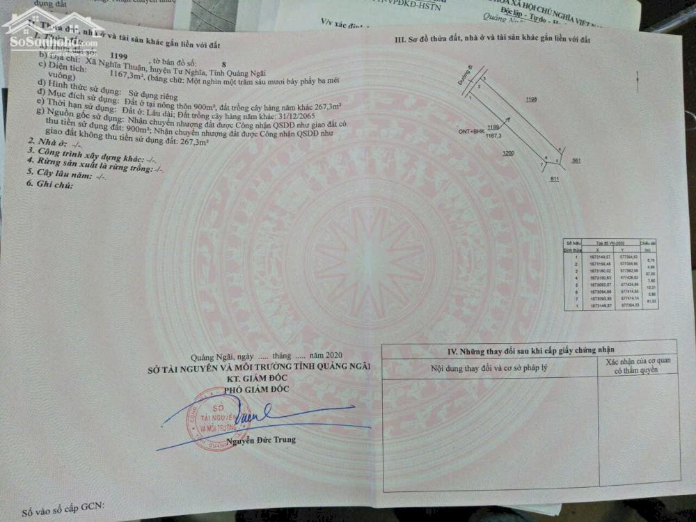Chính Chủ Bán 1167,3m2 Đất Tại Xã Nghĩa Thuận, Huyện Tư Nghĩa, Tỉnh