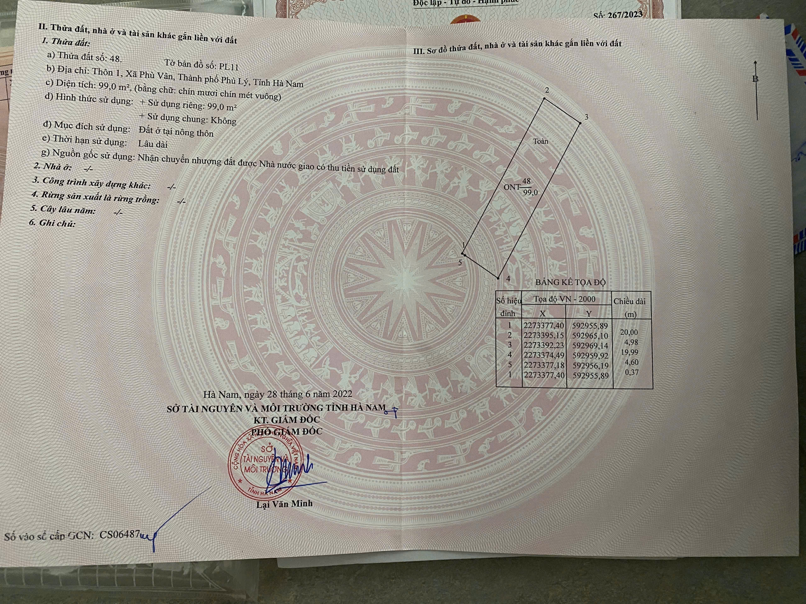 chính chủ bán lô đất đẹp – xã phù vân, phủ lý, hà nam