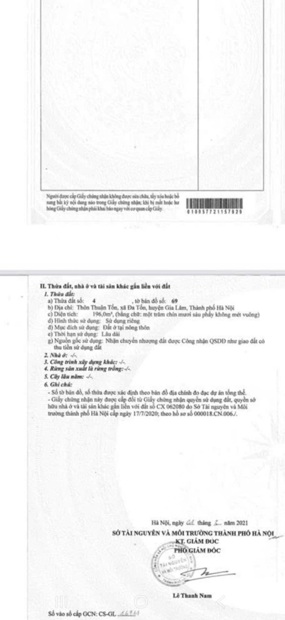 chính chủ bán lô gần 200m2 - vị trí đẹp tại ngõ 95 đa tốn, gia lâm