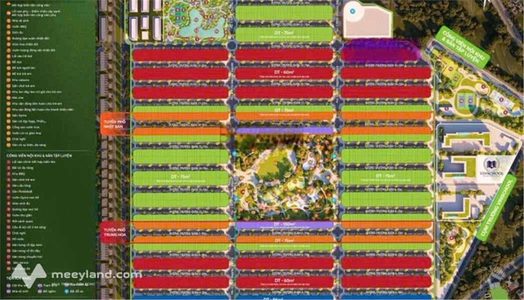 - Đầy đủ tiện ích nội + ngoại khu: Hệ thống cây xanh, hồ nước, công viên, trung tâm thương mại, trường học, bệnh viện