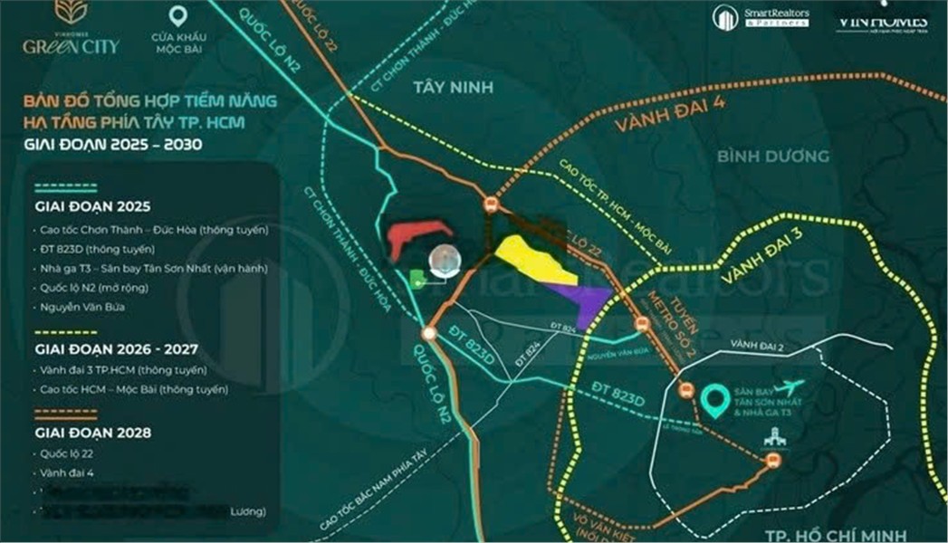 - Giao thông thuận tiện, kết nối thuận tiện với TP. HCM và các tỉnh miền Tây qua trục quốc lộ N2.