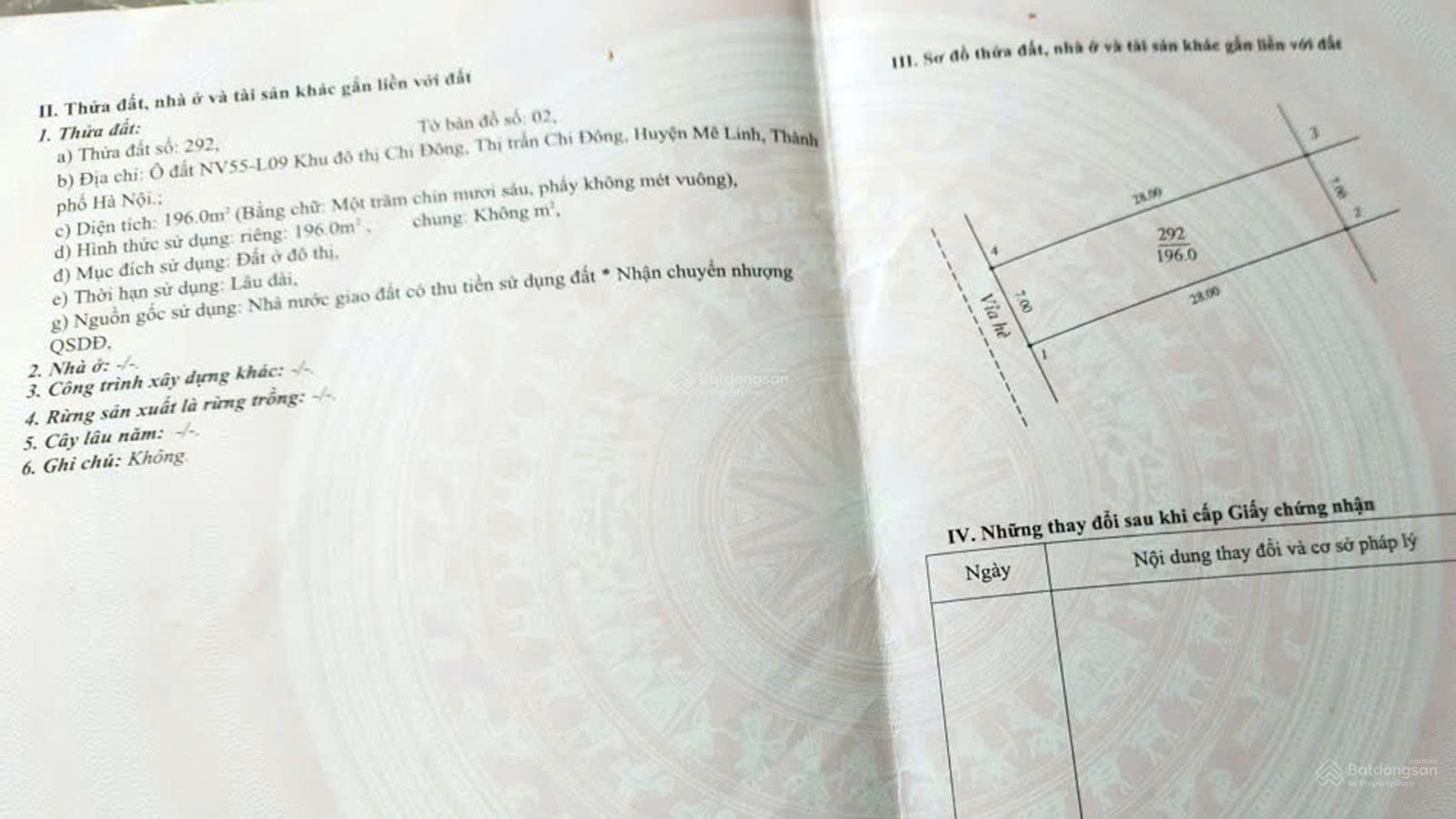Địa chỉ đất: Tổ 2, Chi Đông, Mê Linh, Hà Nội. Đất vuông vắn, full thổ cư, ô tô đỗ cách 15m. Ba bước chân tới chợ, sân vận động - trung tâm thị trấn Chi Đông. Trường mầm non, trường học các cấp cách đất khoảng 500m. Cách khu công nghiệp Quang Minh 850m. Sổ đỏ cất két, pháp lí chuẩn giao dịch. Chủ thiện chí bán, giá cả có thể thương lượng sâu.