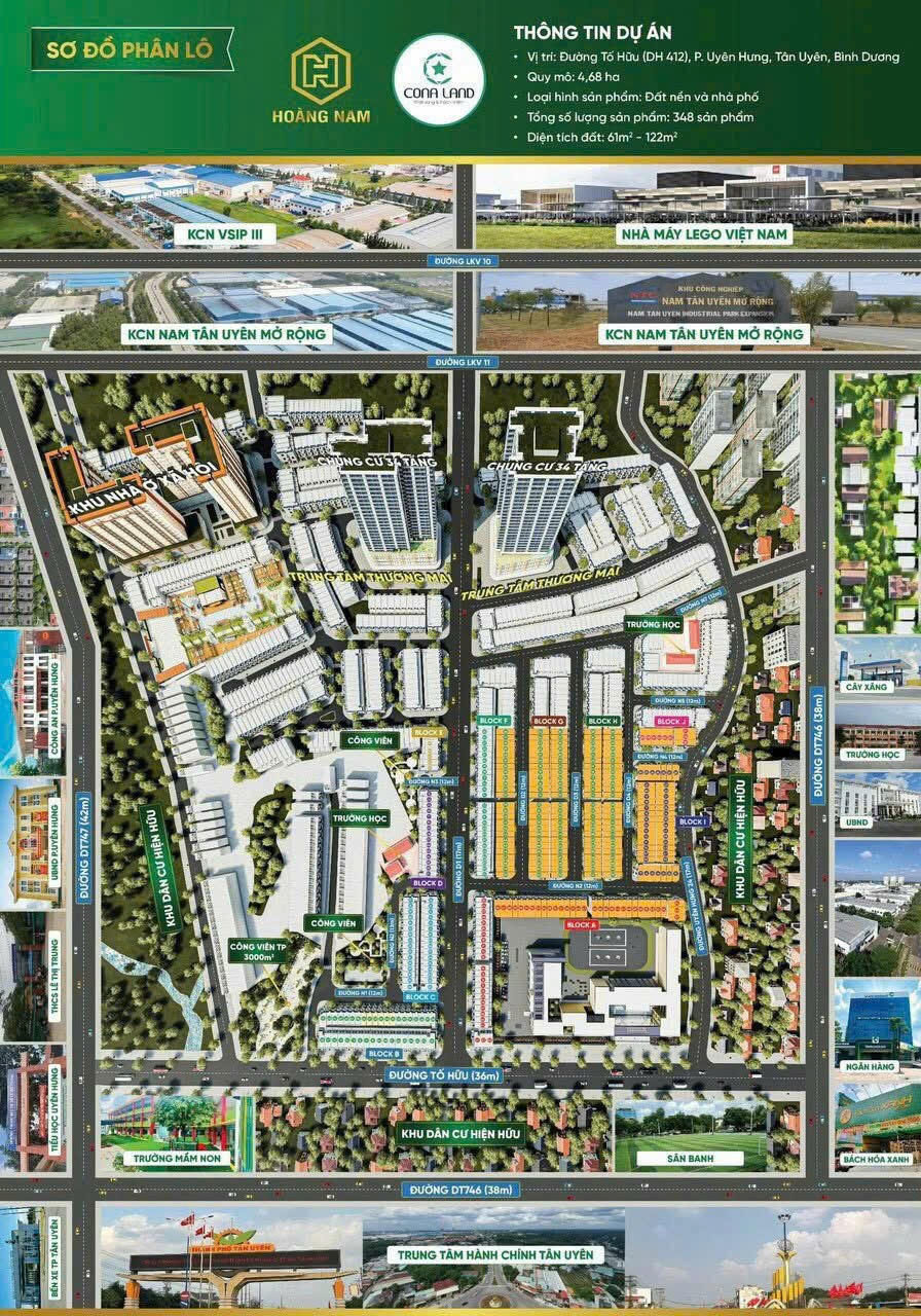 - Khu đô thị Hoàng Nam Uyên Hưng – Đường Tố Hữu, P. Uyên Hưng, TP. Tân Uyên, Bình Dương