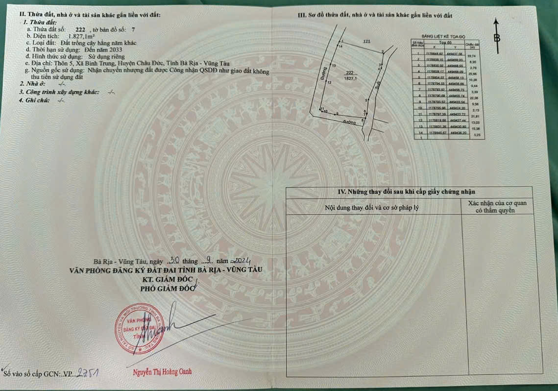 Địa chỉ: ĐT 765, Bình Trung, Châu Đức, Bà Rịa - Vũng Tàu
