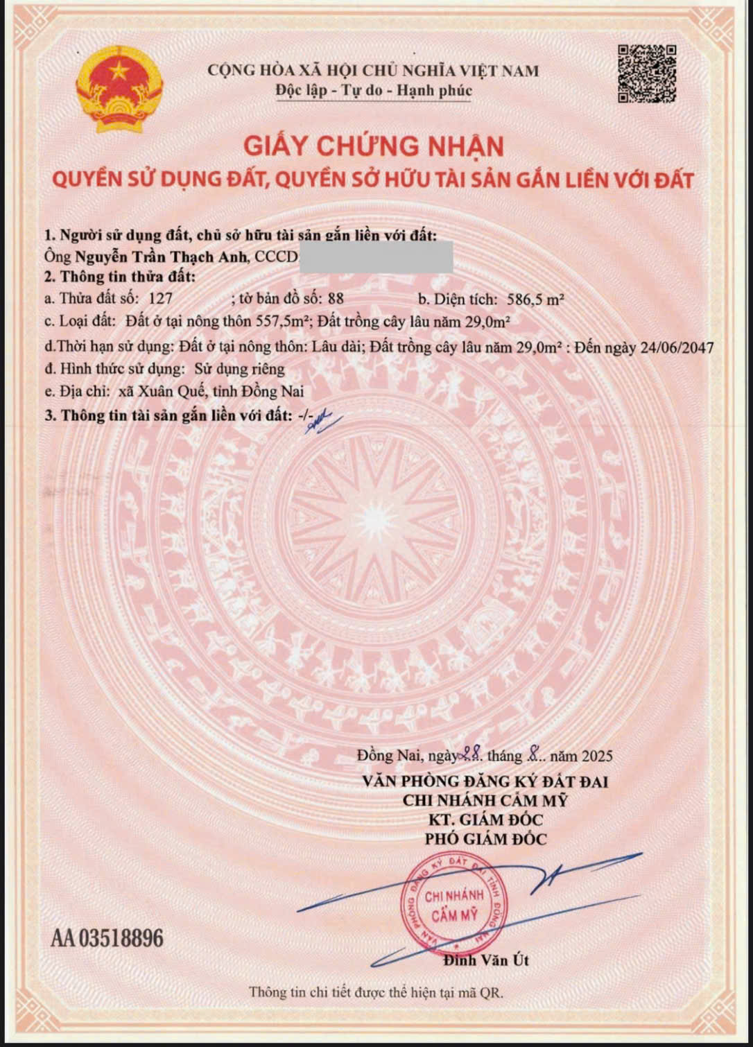 Địa chỉ: CT01, Xuân Quế, Cẩm Mỹ, Đồng Nai