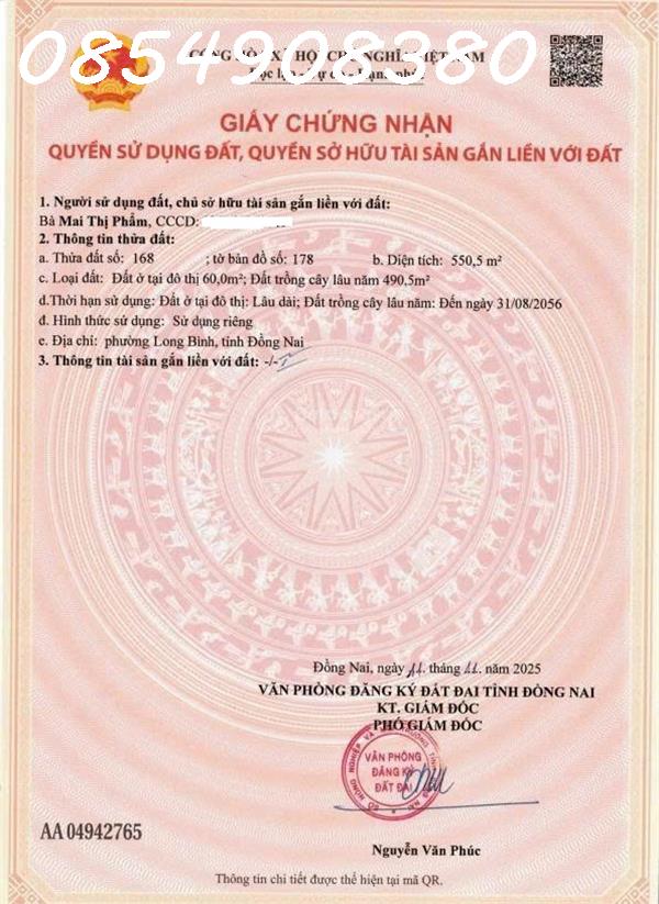 Bán 850m2 Đất Chính Chủ Mặt Tiền Đường Chính Trung Tâm TP. Biên Hòa - Đường Hà Huy Giáp, P. Quyết Thắng Địa chỉ: Đường Hà Huy Giáp, Phường Trấn Biên, Đồng Nai (địa chỉ mới) Đường Hà Huy Giáp, Phường Quyết Thắng, Thành phố Biên Hoà, Đồng Nai (địa chỉ cũ) Diện tích: 850m2 (25*33m), Full thổ cư - Vị trí: mặt tiền đường nhựa chính rộng 14m, vỉa hè mỗi bên rộng 8m đã lót đá hoa cương - Nhà hướng: Đông Bắc nhìn ra Sông Đồng Nai cách 40m. - Cơ sở hạ tầng: điện - nước - cáp âm toàn bộ - Tiện ích xung quang đầy đủ: +) Cách Trung Tâm Thương Mại, chợ Biên Hòa, Siêu Thị Aeon Mall, Trường Học, Bệnh Viện, UBND Tỉnh Đồng Nai khoảng 300m. +) Cách Ngã 3 Vũng Tàu khoảng 1km, đường nhựa rộng 24m. - Giao thông: dễ dàng kết nối với các khu vực lân cận. - Pháp lý: sổ hồng riêng chính chủ, sang tên nhanh chóng - Thích hợp: xây dựng nhà ở, văn phòng, kinh doanh nhà hàng, khách sạn,... hoặc đầu tư sinh lời Giá bán: 52 tỷ Khách Hàng Nhu Cầu Liên hệ Chính Chủ: 0902.957.989
