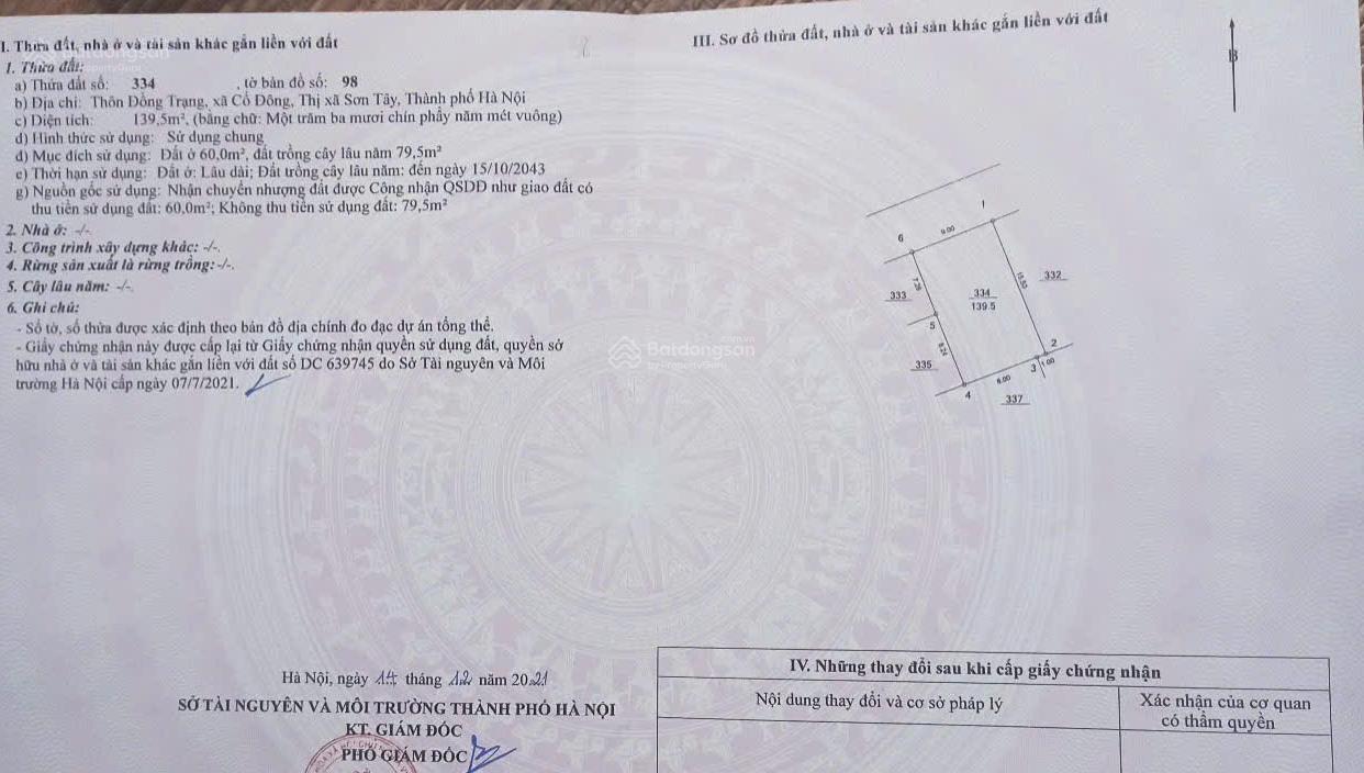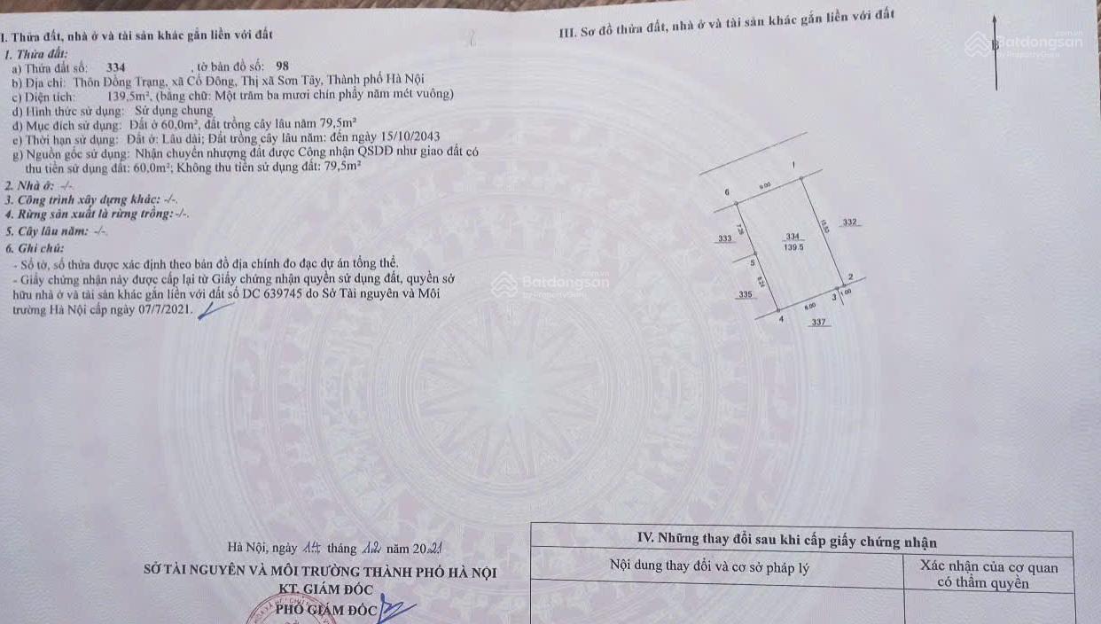 chính chủ cần bán lô đất tại thôn đồng trạng, xã cổ đông, thị xã