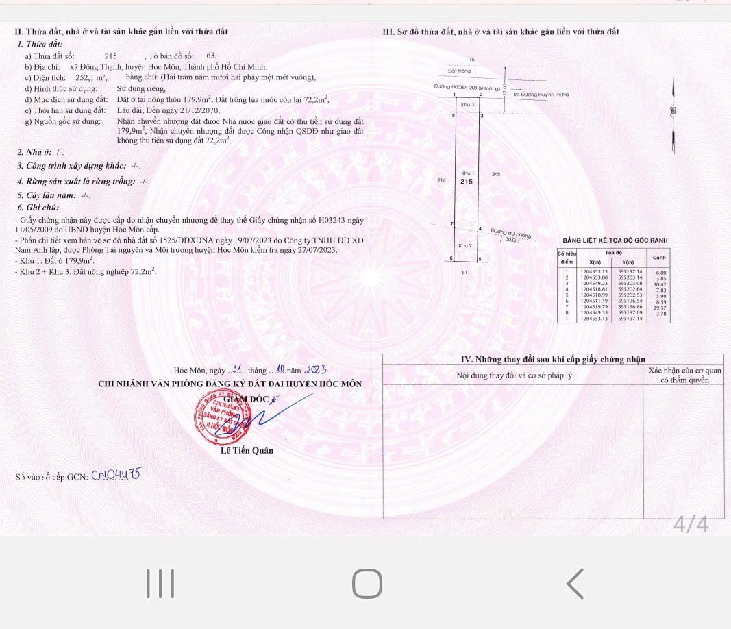 ĐẤT ĐẸP- GIÁ TỐT CHÍNH CHỦ CẦN BÁN NHANH LÔ ĐẤT TIỀM NĂNG TẠI huyện Hóc Môn thành phố Hồ Chí Minh Địa chỉ: đường Lê Văn Khương, Xã Đông Thạnh, Huyện Hóc Môn, Tp Hồ Chí Minh(Xã Đông Thạnh, TP Hồ Chí Minh mới) - Diện tích: 168m2 full thổ cư - Giá bán: 5,7 tỷ - Đường 7 m, ô tô lớn vào, quay đầu thoải mái. - Vị trí: cách cầu dừa Lê Văn Khương chỉ 700 m. - Tiện ích xung quanh đầy đủ gần chợ bệnh viện, trường học... - Giao thông thuận tiện đi lại dễ dàng - Khu dân cư thân thiện an ninh tốt - Pháp lý đầy đủ thủ tục nhanh chóng Phù hợp: định cư lâu dài, đầu tư sinh lời, xây biệt thự nghỉ dưỡng... Tiềm năng lớn đảm bảo sinh lời Mọi nhu cầu liên hệ chính chủ: 0903375639