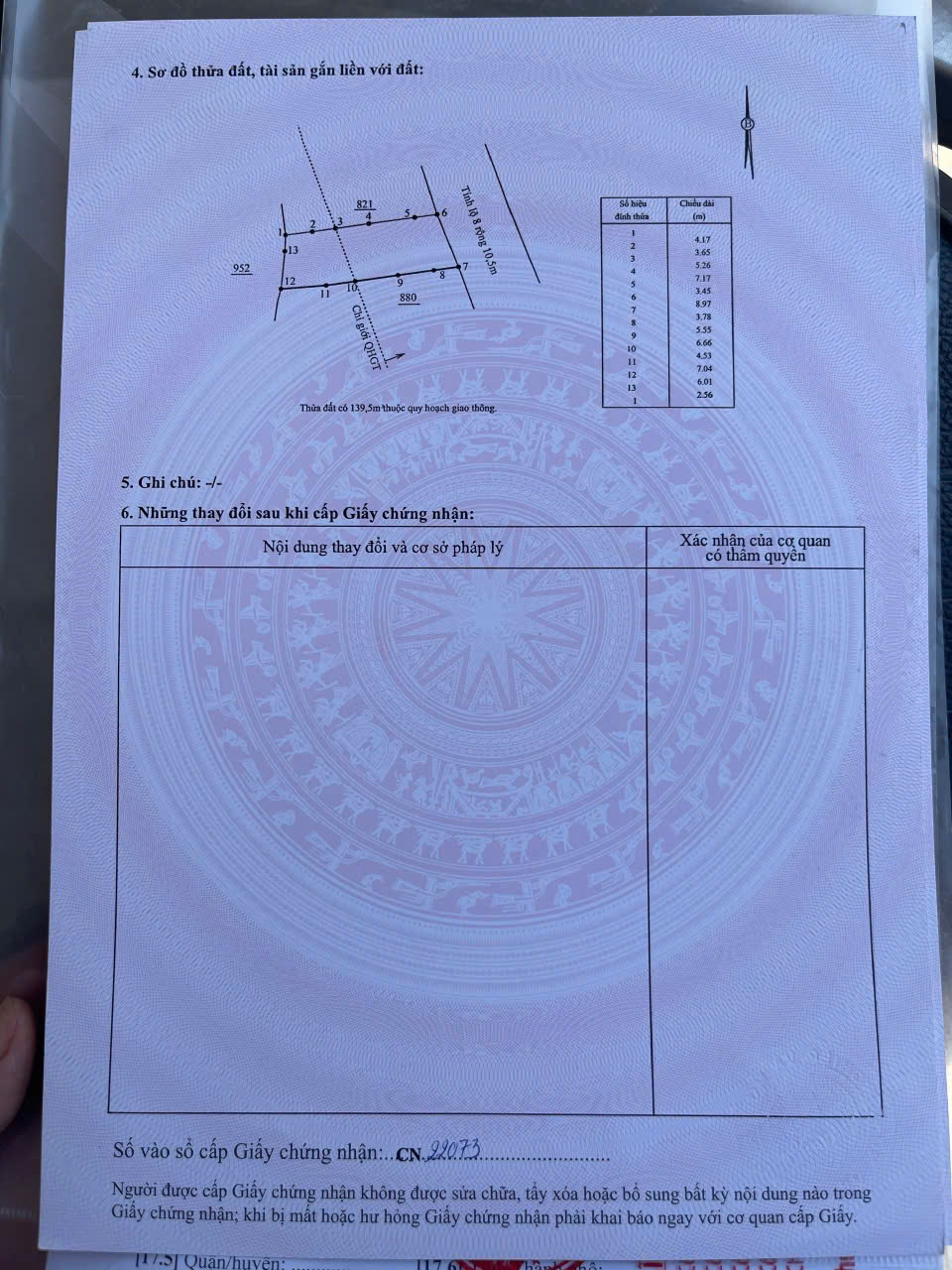 Msp 0504 - BÁN LÔ ĐẤT MẶT TIỀN ĐƯỜNG HƯƠNG LỘ 45 TẠI XÃ DIÊN PHÚ . - PHÙ HỢP KHO XƯỞNG , BIỆT THỰ , NHÀ VƯỜN - HƯỚNG : TÂY BẮC - ĐƯỜNG RỘNG 8m SAU QUI HOẠCH RỘNG 20m - KẾT NỐI TIỆN ÍCH 500m ĐẦY ĐỦ - DIỆN TÍCH : 529 m2 ( ngang 11,7m) - THỔ CƯ : 200m - GIÁ : 9 TRIỆU / m2 ( 4 TỶ 200 TRIỆU ) LH :