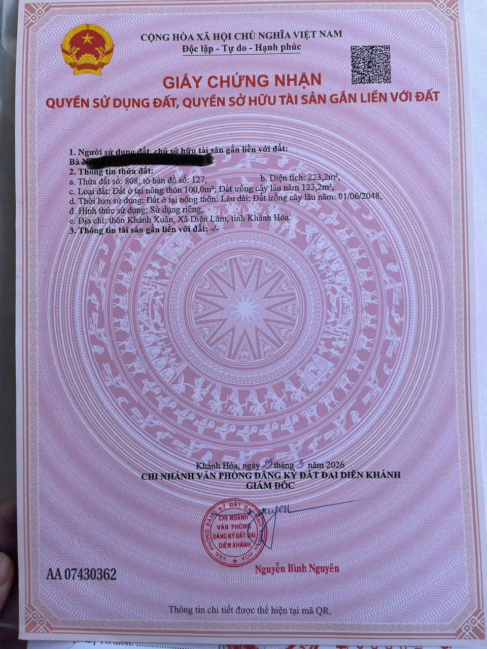 chính chủ cần tiền bán gấp đất mặt tiền tỉnh lộ 8 – diên lâm, diên