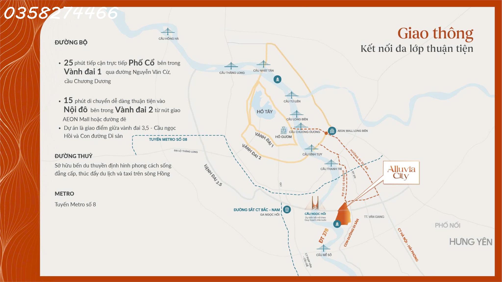 Aluvia căn hộ cao cấp khoáng nóng đầu tiên tại Hà Nội Alluvia khoáng nóng và vô vàn tiện ích như: - Không khí trong lành, cây xanh,……... - Khi trục cảnh quan " Kỳ tích sông Hồng" hoàn thành sẽ tạo 1 trục cảnh quan đắt giá nhất ven sông. - BĐS ven sông luôn được thu hút tại các thành phố lớn trên thế giới cho giới tinh hoa, hệ số tăng giá hàng năm. - Alluvia: TP cửa ngõ phía đông thành Phố ngay chân cầu Ngọc Hồi. - Sở hữu ngay phân khu Onsen khu khoáng nóng. - Đón đầu giao thông thuận lợi từ Hà Nội - Hưng Yên. - Số tầng: 39 tầng. Diện tích: 38m² - 211m² (studio, 1 - 3 ngủ, Duplex, Penthouse). Mật độ xây dựng: ~27%. Giá bán dự kiến chỉ từ 65-70tr/m2. LH: 093.198.2626 để nhận bảng hàng, căn đẹp, tầng đẹp