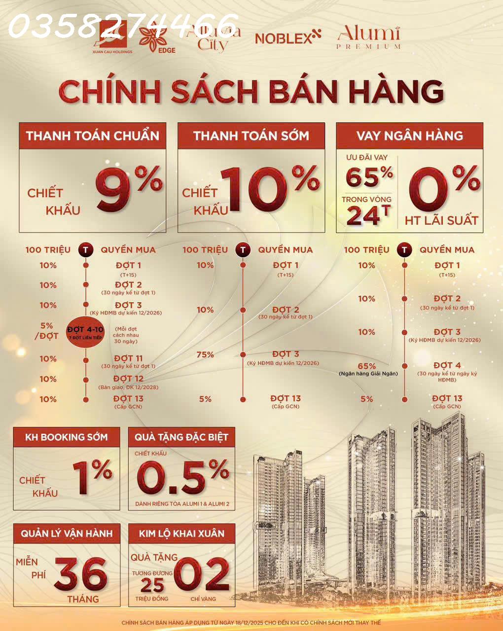 Chính thức nhận booking chung cư Alluvia City: Tên dự án: Alumi. Vị trí: Khu đô thị Xuân Cầu thị trấn Văn Giang, tỉnh Hưng Yên. Chủ đầu tư: Công ty Cổ phần Tập đoàn Xuân Cầu. Quy mô: Nhiều tòa căn hộ cao cấp. Số lượng căn hộ: Mật độ cực thấp chỉ 17 căn/sàn (~ 600 căn/ mỗi tòa). Tổng diện tích khu đất: ~5 ha (giai đoạn 1). Loại hình phát triển: Căn hộ cao cấp khoáng nóng tự nhiên, shophouse, tiện ích chăm sóc sức khỏe chuẩn resort. Diện tích căn hộ: Linh hoạt từ 36 m² (Studio) 56 m² (1PN + 1) 72.85 m² (2PN). 83m2 (2PN) 131.3 m² (3PN). Thời gian: Đã hoàn thiện móng và bắt đầu xây dựng phần thân. Thời gian bàn giao dự kiến: Quý IV/2027 đầu Quý I/2028. Hình thức sở hữu: Sổ đỏ lâu dài (đối với khách Việt Nam), 50 năm (đối với người nước ngoài theo quy định hiện hành). Quý AC muốn sở hữu dòng căn hỗ cao cấp, đầu tư cả về sức khỏe và tiềm năng tăng giá thì k thể bỏ lỡ khu đô thi ven sông này. Khách hàng có nhu cầu Ib Zalo: 093.198.2626