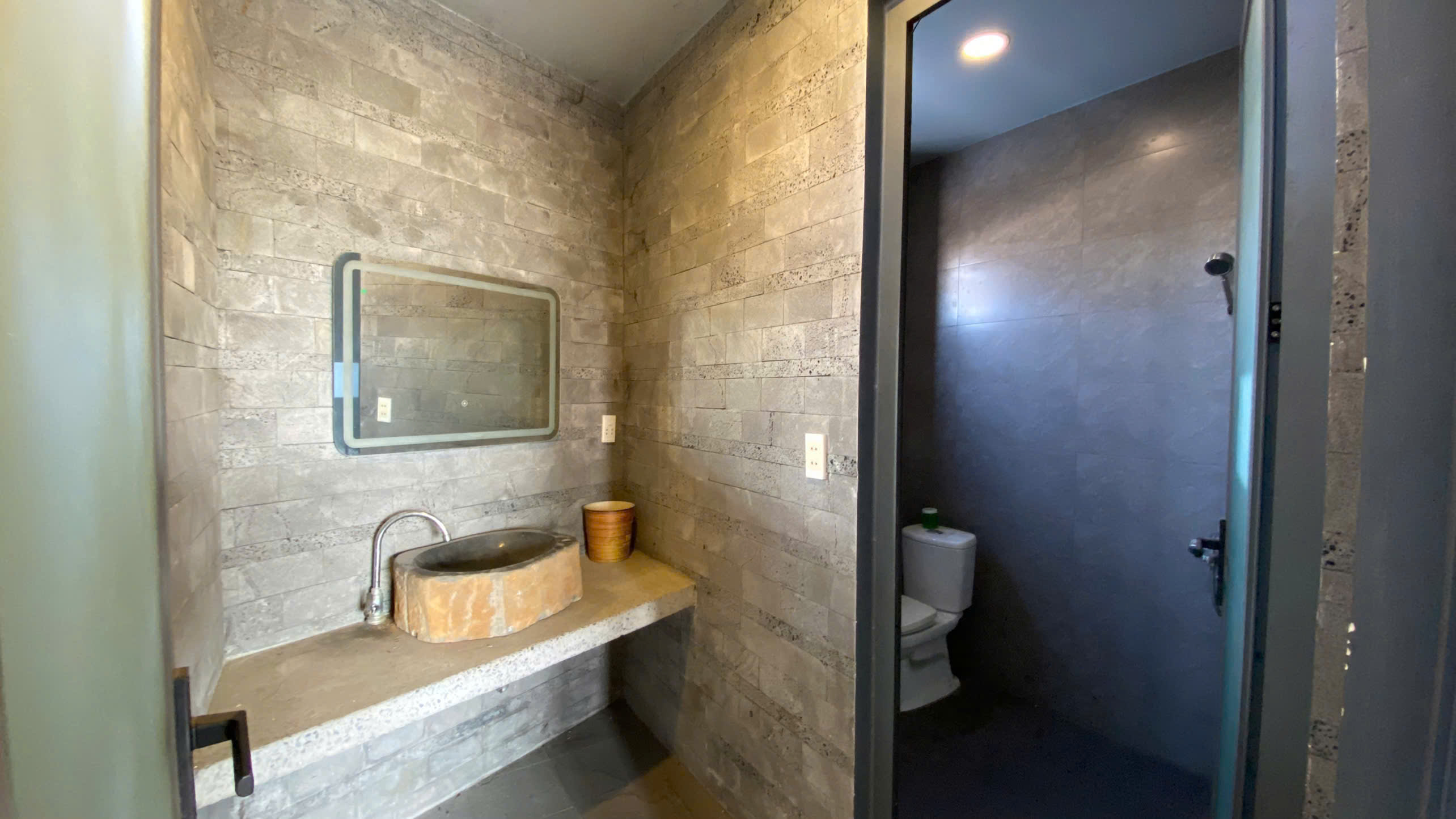 • Toilet chuẩn “Luxury”:Ốp đá sang xịn, gương LED hiện đại, sạch sẽ – có thể tắm rửa tiện lợi.