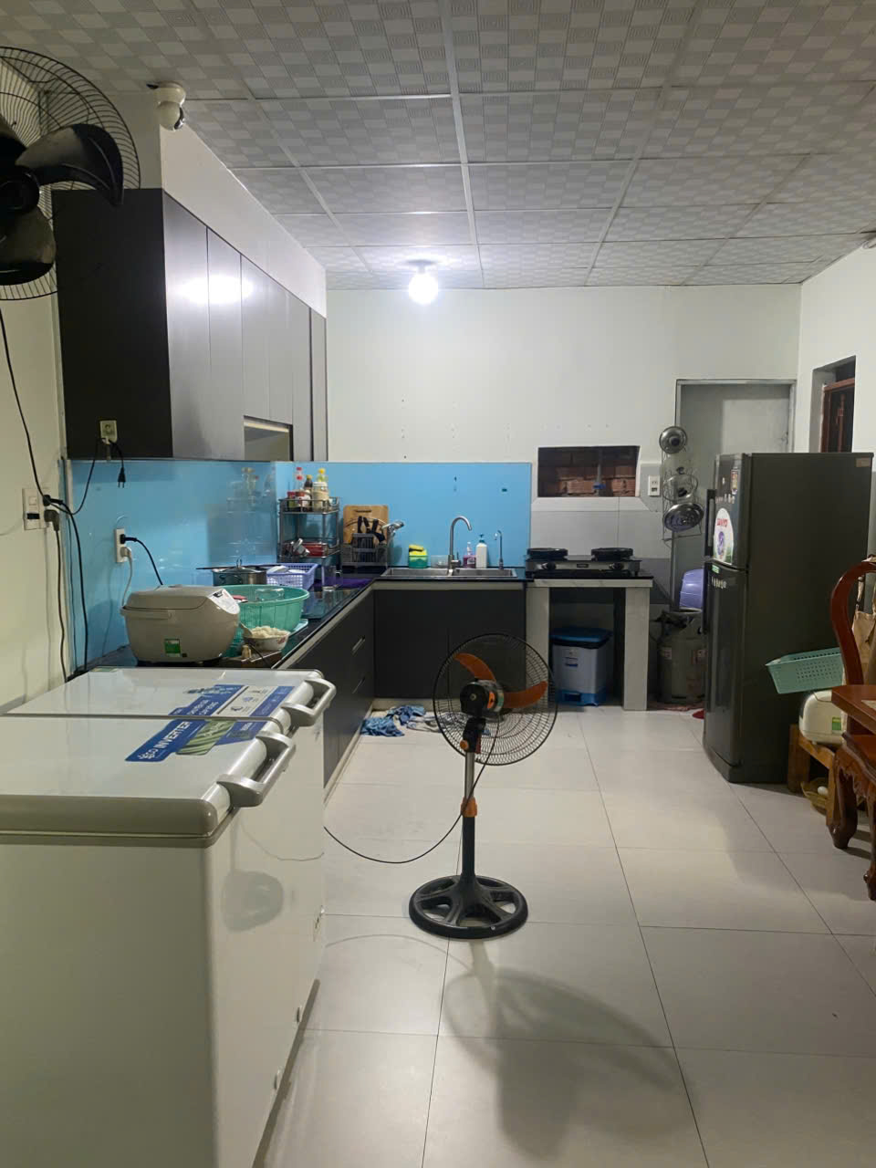Bếp và phòng khách thoáng mát, nhiều ánh sáng