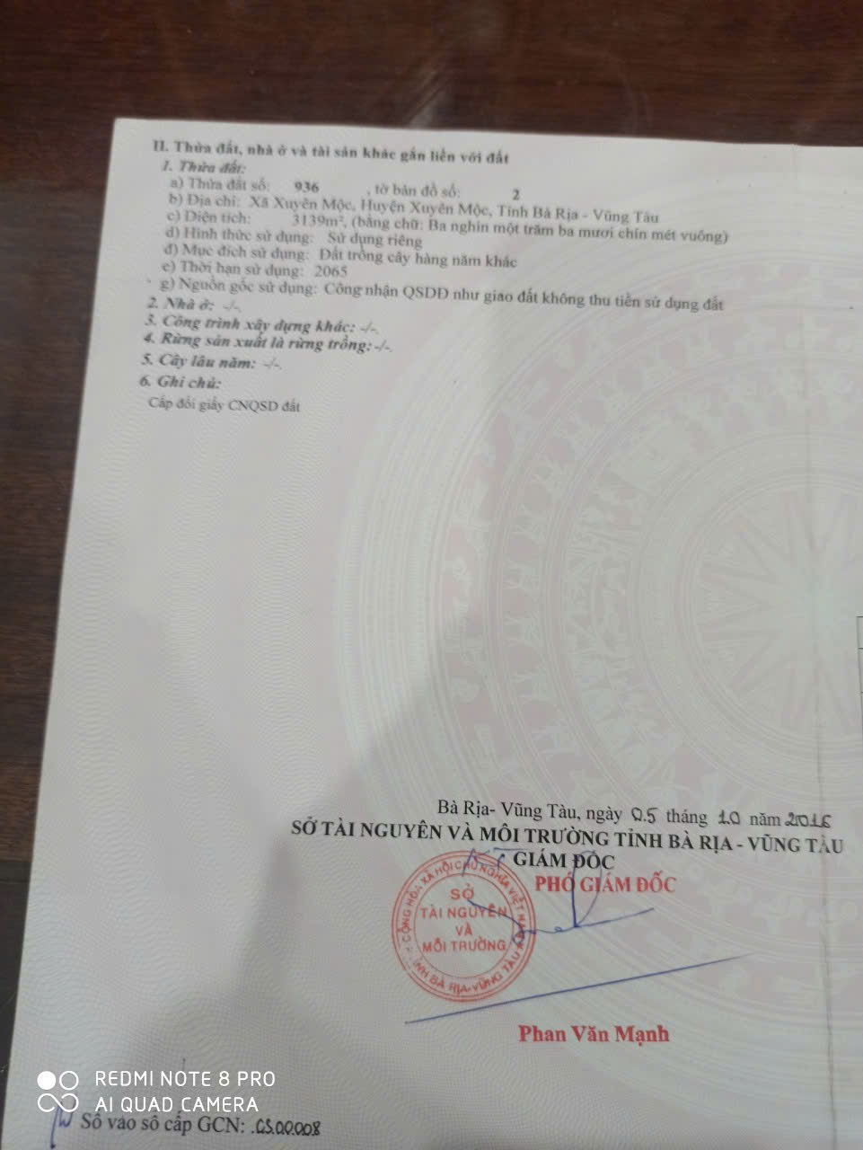 Chủ bán 9700m phủ hồng tân Lâm xuyên mộc có 80 thổ cư Diện tích : 26x385x80 thổ cư Thích hợp làm nhà vườn nghĩ dưỡng Giá bán chỉ 3ty700tr Call zalo 0902787552- 0937849600lvtt chủ